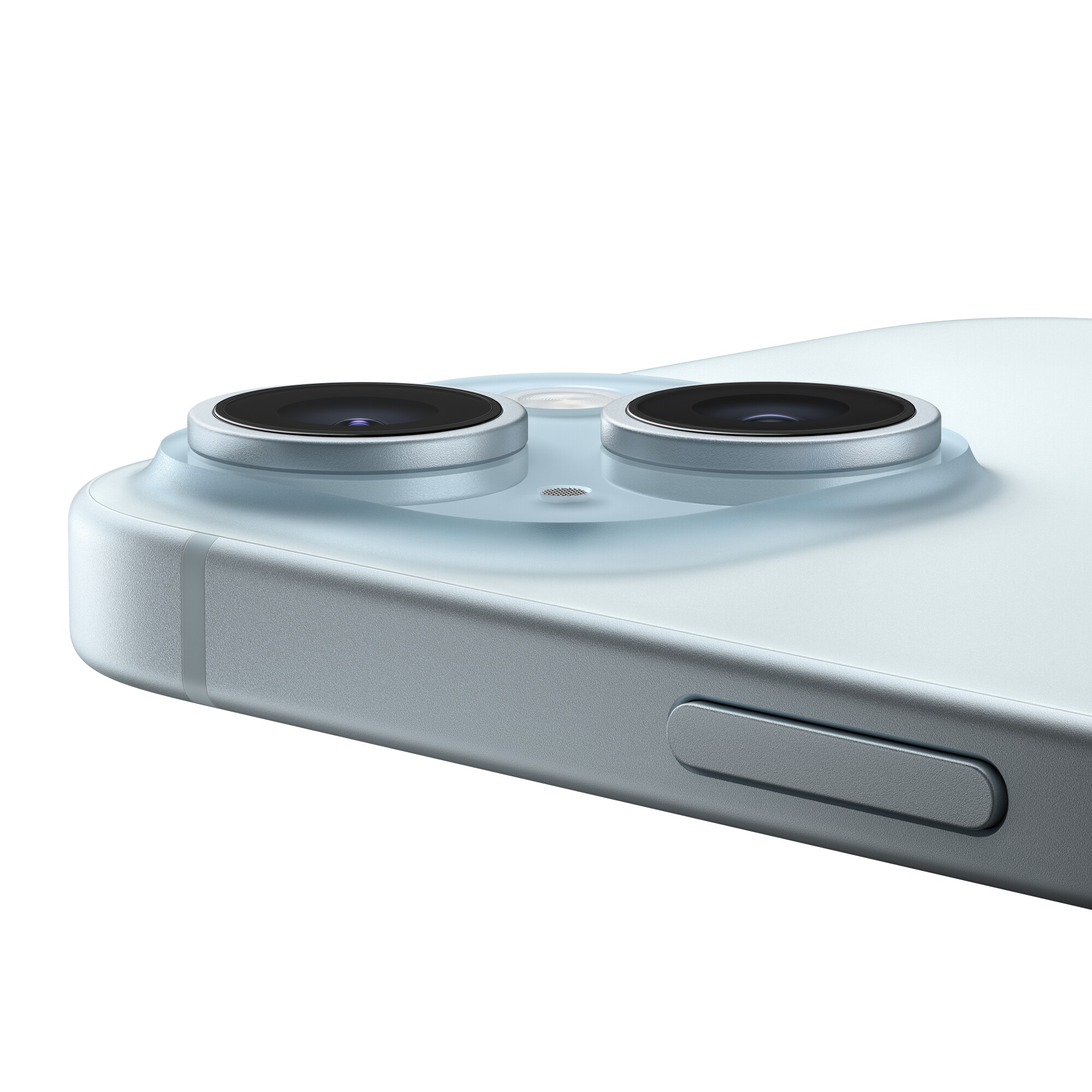 Partea posterioara a noului design inovator este din sticla impregnata in intregime cu culoare. Datorita unui proces personalizat de dublu schimb ionic in tratarea sticlei si a carcasei din aluminiu de clasa aerospatiala, iPhone 15 devine incredibil de rezistent.